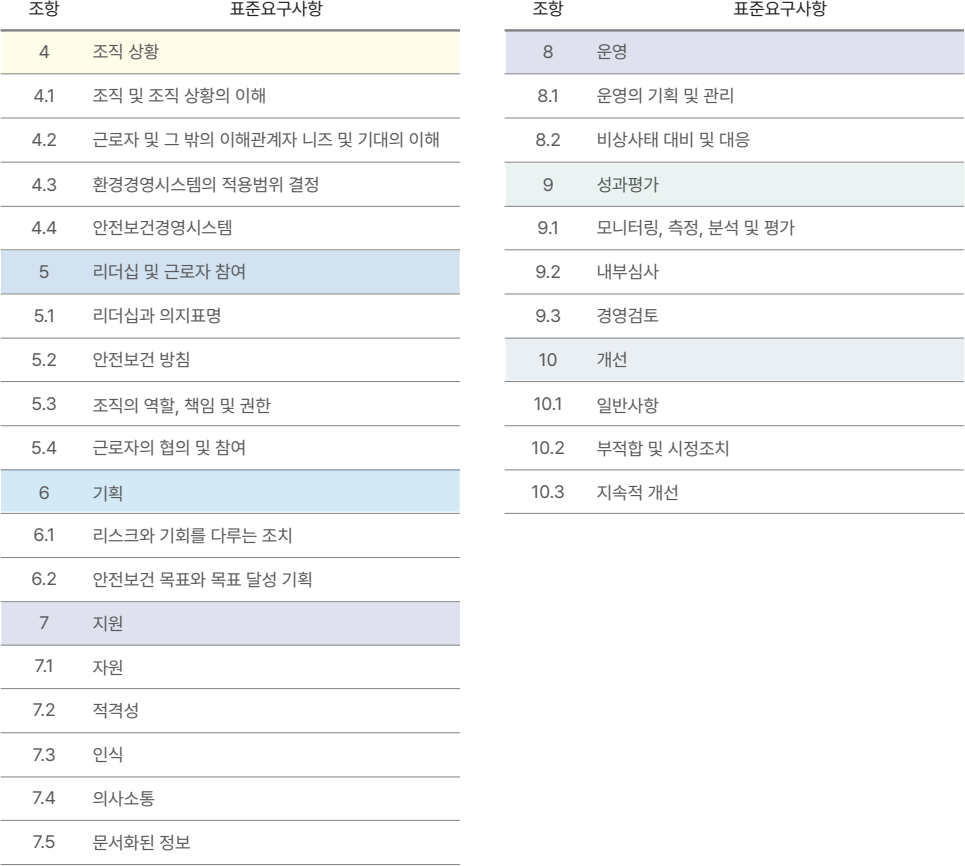 ISO 45001은 조직 내 근로자의 건강과 안전을 보호하고, 산업재해를 예방하기 위한 경영 시스템입니다. 법적 리스크 감소와 안전 문화 구축을 통해 신뢰받는 기업 환경을 만들 수 있습니다.